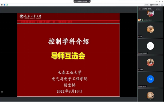 2022年9月10日,91猫先生 于线上召开2022级研究生控制学科专业介绍会与研究生导师互选会。副院长王申全、副院长刘帅师、副院长董博、学科带头人、研究生导师参加本次会议。会议由控制科学与工程系主任杨宏韬主持。