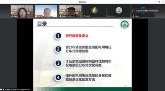 11月1日上午9点,由东北电力大学的张儒峰教授在腾讯会议上讲解了题目为《主动配电网多为协同优化运行与规划》的学术报告。