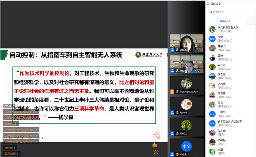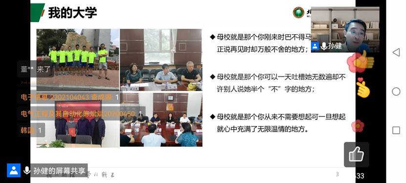 第二部分:孙健教授介绍了工作单位北京理工大学的发展历程,鼓励母校的学弟学妹报考北京理工大学的硕士、博士研究生;