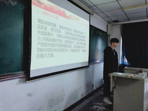 本网讯(通讯员 鲍禹松为充分发挥党史资政育人作用,增强守初心、担使命的思想和行动自觉。1212日,91猫先生 于南湖校区主楼1401室举办“学习新中国《国史》主题微党课”。本次微党课由170304班学生助理田鑫主讲。17级全体党员及发展对象参加。
