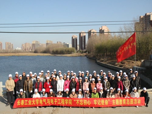 党委组织全体师生党员乘坐55路有轨电车赴长春市绿园区同心街道同心湖水库开展“不忘初心,牢记使命”环保志愿服务活动。
