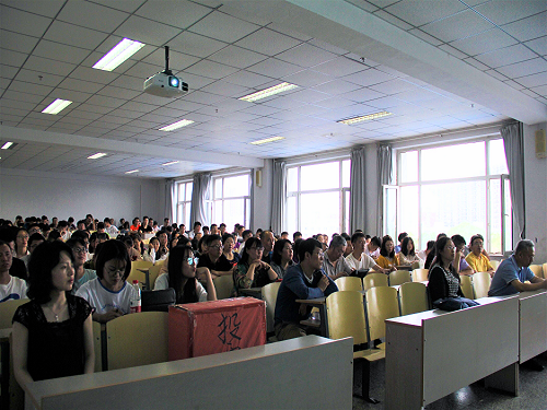 接下来,讲座正式开始,肖立文首先对学院的邀请表示了感谢,随后结合自己的亲身经历,他向全体与会人员做了一堂生动的讲座。作为一名普通的公务员,6年来肖立文坚持无偿献血,坚持每月献一次血小板,平均25天献血一次,迄今为止他已经参加无偿献血100余次,献血总量超10万毫升。肖立文向大家生动地阐述了什么是党性,什么是奉献,全体与会人员被肖立文的讲座所打动,所振奋,大家为肖立文精彩的讲话报以最热烈的掌声,并纷纷表示将会学习肖立文这种无私奉献的精神。随后,学院党委书记王丽娜进行总结发言,她对肖立文的事迹表达了深深的敬意,并希望全体师生都能够将这种无私奉献的雷锋精神传承下来;王丽娜指出,通过肖立文的亲身经历,让大家看到了什么是大爱,什么是奉献,全院师生应该向肖立文学习,为社会多做贡献,时时刻刻牢记自己的职责,做好社会志愿服务工作。活动最后,全体人员来到了科研楼楼下与肖立文合影留念,合影结束后,学院团委书记高博再一次向全体师生发出了号召,希望大家能以“吉林雷锋”肖立文为榜样,积极投入到志愿服务中去,让志愿服务的雷锋精神在91猫先生 开花结果,传承不息