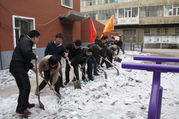 通过调查发现社区仍有积雪,堆在居民经常行走的道路上,妨碍居民行走和影响社区卫生,党员先锋队成员纷纷拿起带来的工具,积极主动地扫起了雪,之后又拿起了抹布擦起了社区内的板报,经过了一个小时的努力,让社区旧貌换新颜。虽然天气寒冷,但是党员先锋队的行动让社区温暖起来。