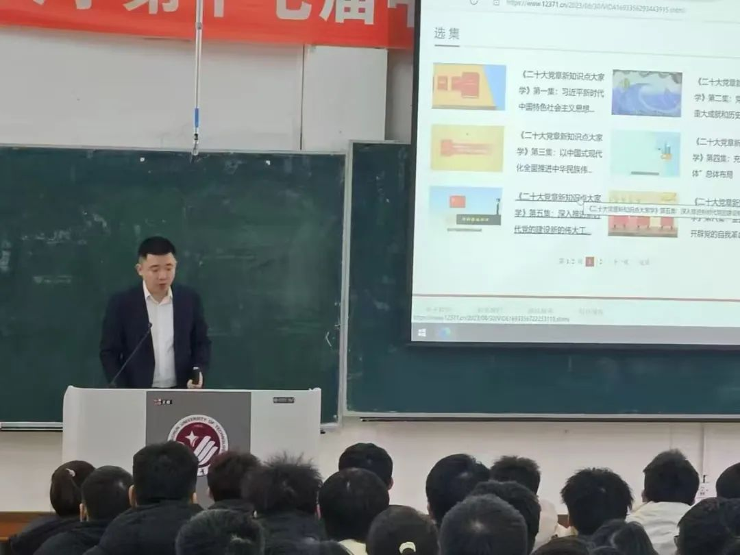 第四堂党课中,23级辅导员黄家奇老师以纪录片的形式为同学们讲解中国共产党的发展历程与时代精神,深入浅出地阐述了党的工作性质与基本方针。同学们在形象的动画中加深对了党的理解,更加坚定了向党组织靠拢的决心。