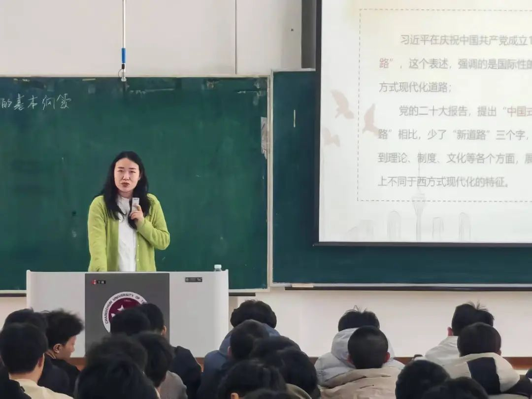 在第三次党课上,学院党委专职组织员王明慧老师围绕“以中国式现代化全面推进中华民族伟大复兴”展开讲解,重点阐述中国式现代化特征。