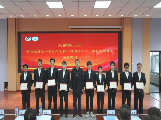 大会第三项 学院党委副书记谷阔 为新一届团学骨干、研究生会骨干颁发聘书