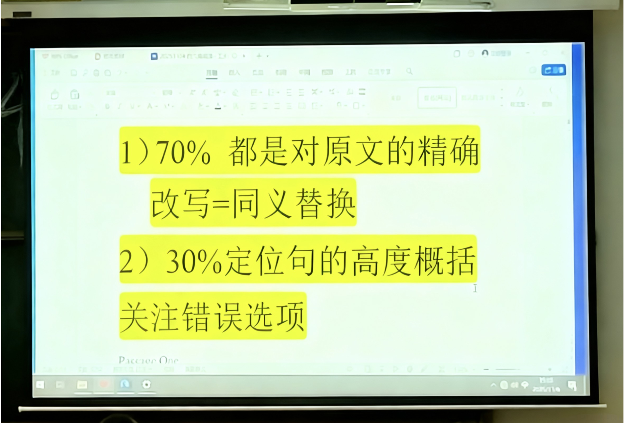 在讲解过程中,老师还强调了提升阅读理解需掌握两大要点:一要积累词汇,并能识别选项中的同义替换;二要学会概括定位句信息,根据关键词并据此排除错误选项。