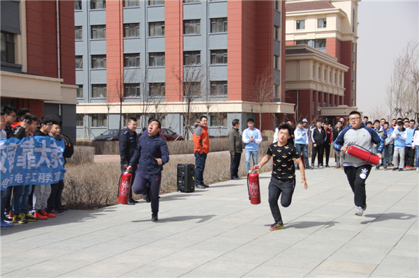 系列活动之二:生死时速 4月7日学院在北湖校区举办了“生死时速”活动。活动以手捧灭火器进行50米往返接力跑的形式开展。活动过程中,同学们展示出激昂的电气风采,即使摔倒在地,也不会退缩。同时,校区保卫办的冯晓彬为同学们讲解消防安全的重要性和消防器械的使用方法。