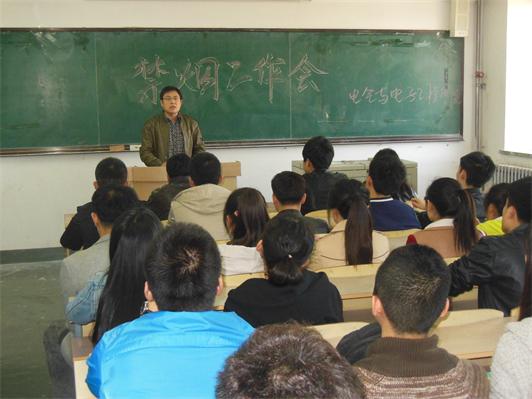 (通讯员 宋文全)3月31日中午,学院在南湖校区1401室召开禁烟工作会,学院党委副书记周文军,团委书记赵爽,学生党支部书记高博、单洪朱及学院班级主要学生干部参加会议。
