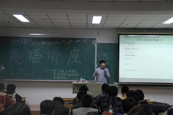 讲座由长春市新东方学校考试部总监吴博老师主讲,吴老师主要针对考研以及改革后四、六级中可能遇到的各个题型对同学们进行了详细的指点。吴老师通过自己的一些经历告诉同学各个题型应该怎样去进行针对性的复习,尤其作文要审清题意,有自己的观点。随后,他着重指出一定要对官方样题与真题进行透彻的分析,绝不可以掉以轻心,题海战术也是很有必要的。讲座最后,吴老师和同学们进行了现场的交流。