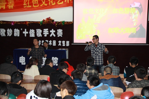 伴随江南style的劲爆节奏大学生艺术团带来了劲舞,让整个舞台顿时火热起来。经过初赛、复赛的选拔,共有14组进入决赛。第一环节“我的风采我做主”展现了学子青春与激情,经过第一轮比拼前八名选手进入第二轮“红歌大连唱”,歌声中洋溢着对祖国的热爱和对改革开放取得巨大成就的讴歌。选手们主宰了这个舞台,他们在舞台上尽情的挥洒才艺,拉拉队和亲友团响起热烈的掌声和欢呼声,将这个比赛变得不再紧张,不再平凡。经过冠亚季军终极PK后由文艺部表演的小品《宫里很忙》,他们风趣的语言,幽默的动作,让新生同学们爱上电气,爱上工大,爱上这美好的大学生活。