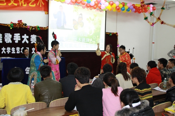 | (通讯员 王敏)11月15日13:30,学院在我校北湖校区西阶204室开展了“朝阳青春”红色文化节活动之轻歌妙韵十佳歌手大赛决赛。出席本次活动的嘉宾有校学生会主席殷卓骏,校社联副主席赵景兴,基础学院学生会主席李俊祎,院学生会主席周子健,副主席郭小龙,秘书长董跃峰。院第十届文艺部部长李明月、艺术团团长包健、校学生会常务副秘书长衣鑫、院学生会副主席兼艺术团团长邢岩担任本次比赛的评委。