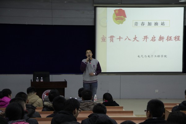 | (通讯员 别墅 史梦婷)11月15日,为提高学院学团干部的综合素质和工作能力,学院团委书记赵爽为学院学团干部开展了主题为“宣贯十八大,开启新征程”的青春加油站培训。
