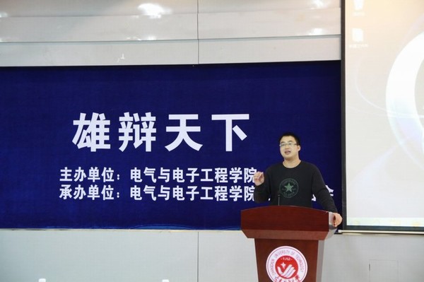 社团联合会在南湖校区综合报告厅举行了题为“雄辩天下”的辩论赛决赛。学院学生党支部书记赵爽老师、团委副书记于洋、徐乐,学生会主席徐超,副主席刘旭观看了比赛。校两会团支部书记姜广博,校文艺部部长王赫楠,校社团联合会副主席史政楠,机电工程学院社团联合会主席张坤,计算机科学学院社团联合会主席武斌,基础科学学院社团联合会主席顾文担任了本次比赛的评委。