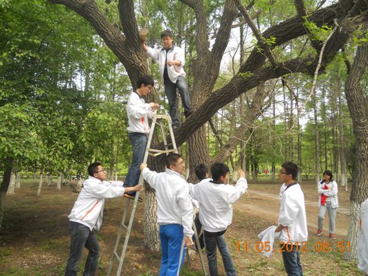 本次活动主要针对春季鸟类数量不断减少,鸟类环境恶化现象开展。110308班团支部在团支书的带领下携带人工鸟巢来到南湖公园,将鸟巢固定于树上,为鸟类安家,改善鸟类的生存环境。