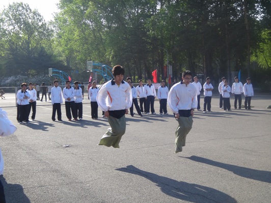 主楼前的的操场上,学院举行了“Super class”班级挑战赛系列活动之袋鼠跳。本次活动由110305班承办,学院团委书记矫东海,学生党支部书记赵爽,院学生会主席徐超观看了比赛。