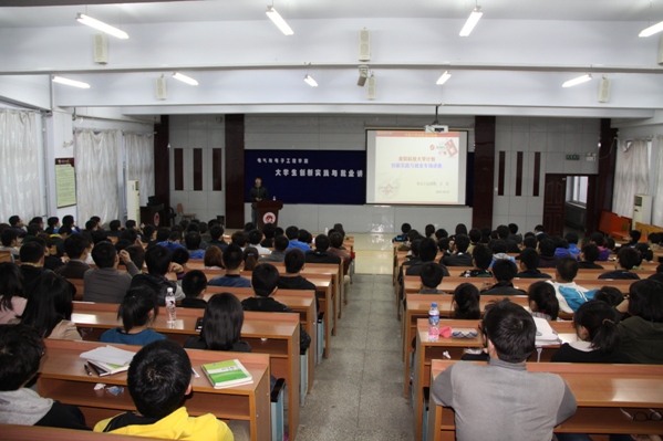 讲座中,王老师首先为大家简单的介绍了台湾凌阳爱普公司以及凌阳集团生产芯片的使用范围,介绍了单片机及嵌入式应用领域的发展及趋势,使同学们对单片机和嵌入式有了初步的理解和认识。紧接着王老师通过视频资料让同学们体验了科技带来的神奇与前卫。在讲座中,王老师结合自己在西安电子科技大学求学和参加国家校级电子设计大赛的经历,现场向大家展示了学生创新作品,介绍了目前创新实验平台。王老师又谈到了大学生就业趋势,他结合凌阳集团对人才需求的具体要求、素质和能力进行了细致的分析,再结合他多年的面试经验,使同学们对当代大学生就业有了新的认解,更加明确了未来大学生活的目标和规划。活动即将结束之际,同学们踊跃提问,王老师热心的解决同学们心中的疑问,对就业问题提出了自己的看法。场下掌声不断,现场气氛十分活跃。