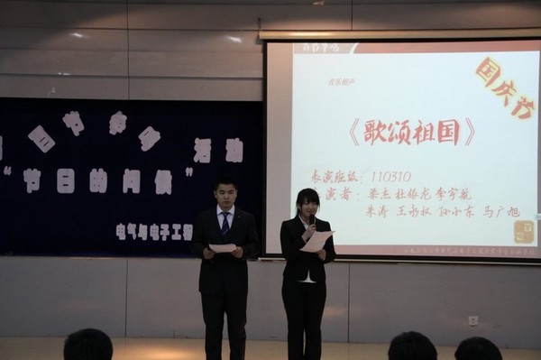 (通讯员 何晓宇 宫廷) 4月16日18点30分,学院在南湖校区综合报告厅举办了首届“百节争鸣——节日的问候”活动。本次活动由院秘书处主办,此次活动得到了新浪微博的大力支持,首次启用了用微博送祝福的方式为参赛班级助威加油的形式。出席此次活动的嘉宾有院团委副书记于洋、学生会副主席刘鹤鸣、院舍委会主任王野、社团联合会副主席李亚林、学习部部长孙学家、网络信息部部长张玖龄、辩论协会会长叶佳美。