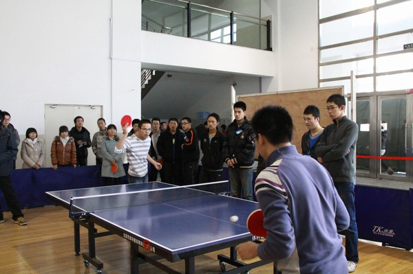 本次比赛以班级为单位,各班以两男一女的阵容出战,采取三局两胜制,初赛中,各班实力相差较大,实力强的班级很快出线。经过两轮淘汰赛之后,110305、110307、110308、110313班成功进入到半决赛,比赛激烈程度一下提高很多,伴随着拉拉队的呐喊助威声,选手们各显神通,最终110307与110308班进入到决赛,比赛进入到白热化阶段,选手们时而巧妙地发球得分,时而精彩的拉球对攻,看的观众不断叫好。最终110308班赢得比赛的冠军,110307班与110313班分列二、三名。