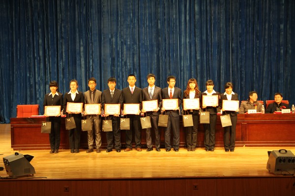 在南湖校区大学生活动中心隆重举行了2011年度优秀学生集体及先进个人表彰大会。校学生工作处处长王春阁、副处长兼大学生就业指导中心主任杨文龙,校团委副书记任佰鹏、常惊宇,学院党委书记张学忠、院长李元春,副院长卢秀和、姜长泓,党委副书记周文军等领导出席了会议。会议由学院团委书记矫东海老师主持。