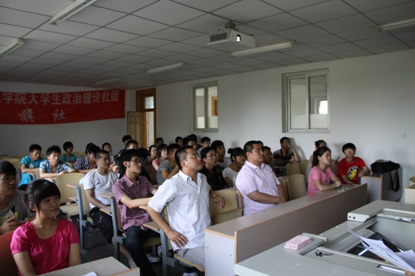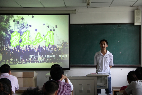 王艳飞同学主持并在此次活动中做了精彩讲演,内容涉及已经离别校园的大四学长的学习、生活等各方面内容,旨在告诫大家要努力学习,不要虚度光阴。随后各班班长、团支书,入党积极分子发表了自己的感想和看法。之后赵爽老师总结了上述同学的发言,并对各位同学的发言给出了一些建议。他还殷切地教导大家如何度过美好的大学生活,培养自己的各方面能力,使自己成为国家社会有用的人才。