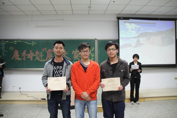 首先由主持人介绍了魔方的起源和特点,并宣布个人赛开始,个人赛共有九人参加,采用计时(三次取最快成绩)的方法进行比赛,比赛一开始,选手们就进入了激烈的角逐,现场的掌声此次彼伏。然后进行了有奖竞答环节,从刚开始主持人介绍的内容中挑选问题,让同学们更加深刻地了解魔方,现场气氛地热烈让嘉宾们也在休息的时段里玩起了魔方。随后进行了团体赛,团体赛以班级为单位,三人一组根据随机抽到的图形进行比赛。最终9号选手和欣雨以36.5秒的成绩夺得个人赛一等奖,团体赛中,100312班夺得一等奖,100311班和100301班获得二等奖,100307班和100304班获得三等奖。