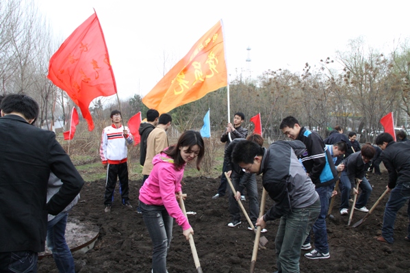 党员先锋队的成员们早早来到了长春公园,大家都热情高涨,在挖树坑的时候,一些没有经验的年轻党员明显感觉有些吃力,但是他们还是很努力,手脚并用的把一颗颗小树栽下,他们希望自己也和这些小树一样,一起成长为祖国的栋梁,做对社会有用的人才。他们说这就是团结的力量,他们觉得大家一起种下了一片希望林,很有意义,很快乐。82岁参加义务植树的东煤公司的退休老党员赵良格,特意给学院发来表扬信,赞扬同学们有吃苦耐劳、甘于奉献、乐于助人的高尚品格。