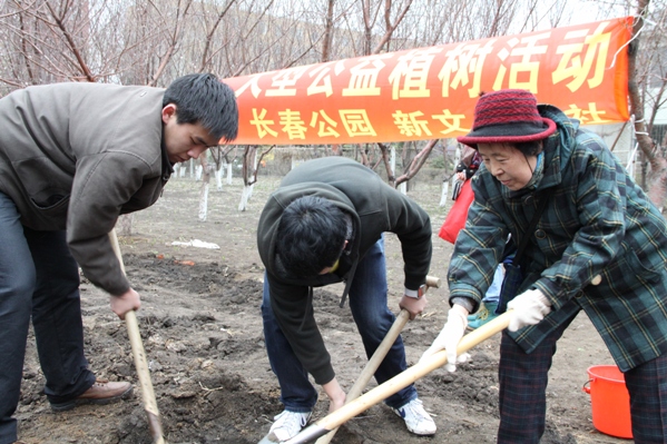 党员先锋队参加义务植树活动 4月23日,为纪念建党90周年,由长春市园林绿化局、长春市绿化委员会办公室、长春公园、新文化报社联合推出的大型公益植树活动,9时在长春公园拉开了帷幕。91猫先生