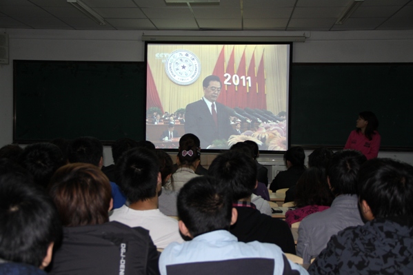 100305班团支部在主楼1401室开展了观看《胡锦涛在庆祝清华大学建校100周年大会上的讲话》理论学习活动。学院学生党支部书记郑洪斌、团委副书记赵健颖参加了此次活动。