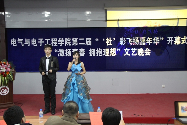 举行第二届“社彩飞扬”社团嘉年华开幕式暨“激扬青春,拥抱理想”文艺晚会 11月30日在南湖校区综合报告厅,由学院主办的以“社彩飞扬”为主题社团嘉年华开幕式在欢快而又有序的气氛中拉开了序幕。前来参加嘉宾有学院团委书记矫东海,学生党支部书记郑洪斌,辅导员老师高博、朱博,校学生会主席范宝超等校、院主要学生干部。