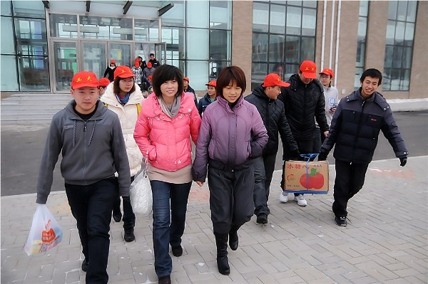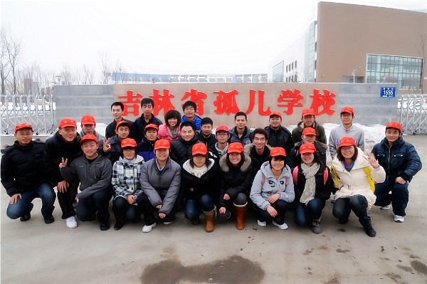 爱心志愿者协会全体志愿者在学院社团联合会主席李佳俊的带领下,走进吉林省孤儿学校奉献爱心。