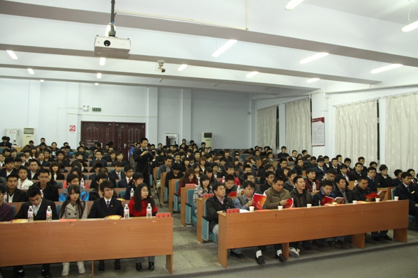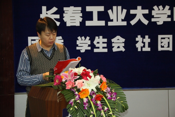 第九届团委,学生会,社团联合会暨舍务委员会成立大会在南湖校区综合三报告厅举行。学生会新老成员、班级干部以及部分学生代表参加了本次大会。学院党委副书记周文军、团委书记矫东海、学生党支部书记郑洪斌、赵爽及辅导员高博、单洪朱、朱博老师出席了本次大会。