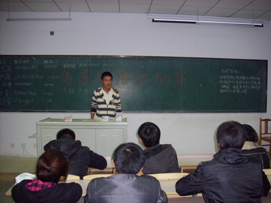 经过学生会各部门对纳新现场的精心布置后,纳新工作在晚5点正式开始,首先由学生会部长为同学们介绍各个部门的工作职能,以及解决大家在纳新过程中遇到的问题。同学们可根据自己的兴趣爱好以及特长自主选择到各个部门进行面试。 教室外注有醒目标示,并有各部门的工作人员接待,让10级的新生更容易找到参加面试的地点。面对同学们存在的疑问,学生会各部工作人员都给予了耐心的解答和指导。面对评委提出的各种各样的问题,有备而来的同学们都条理清晰地一一回答,自信而不张扬。活动现场,同学们表现出非常高的积极性,整个过程井然有序。