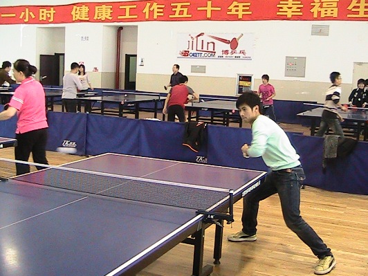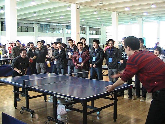 本次比赛以班级为单位进行小组循环,各班级各派出二男一女以抽签的形式进行比赛。比赛场上聚满了人,阵阵呐喊声,给比赛带来了紧张的气氛。选手们分分必争,使出浑身解数;裁判们认真负责,判决公正;拉拉队为选手们高声呐喊助威,每得一分都会爆发一阵热烈掌声。经过预赛的角逐,层层筛选。在接下来复赛中,高潮迭起,选手们奋力拼搏。经过几轮激战,迎来的激动人心的决赛。决赛中各选手比分交替领先,激战赛点。选手们尽显自己的真本领。时而用旋转球,时而用磋球,沉着、冷静的接受对手的挑战。