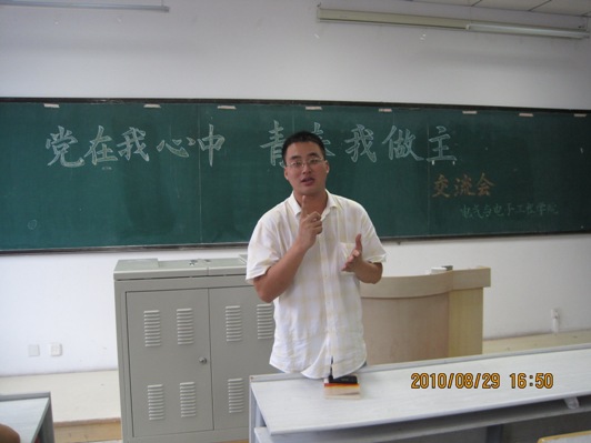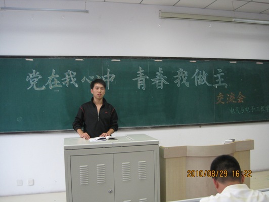 科研楼108教室举行“党在我心中 青春我做主”主题交流会,学生党支部书记郑洪斌、各班学生代表和部分学生党员参加交流会,交流会由学生支部书记赵爽主持。
