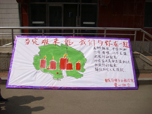 在学院党委组织和号召下,全体教师积极踊跃,学生纷纷响应。学院领导对捐款支援灾区高度重视,带头捐款,学院爱心社配合学校团委在食堂前组织了赈灾募捐活动,各班团支部也积极行动起来,截至24日,全院51个团支部的2000名同学为灾区捐款总计18238.70元。这些在危难时刻展现出的善行和忧国忧民的情怀充分体现了电气师生同舟共济、携手同行的文化内涵和品德风尚。