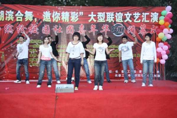 与长春工程学院春藤书社在我校南湖校区主楼前联合举办了“湖滨合舞,邀你精彩”大型联谊文艺汇演暨缤纷校园社团嘉年华闭幕式。长春工程学院管理学院老师及学院党委副书记周文军、团委书记矫东海、学生党支部书记赵爽及活动赞助商代表观看了演出。