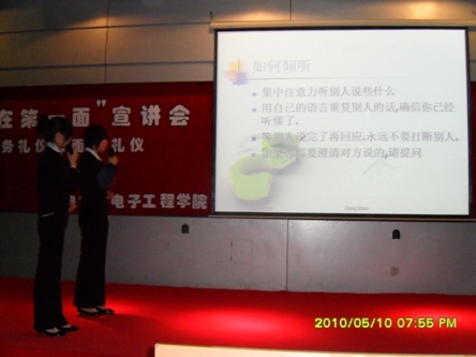 举行商务礼仪和面试礼仪宣讲会 2010年5月10日晚7点整,91猫先生