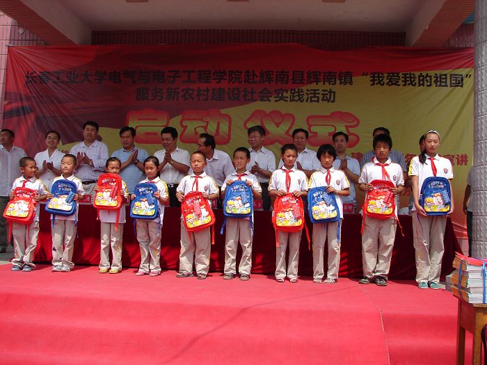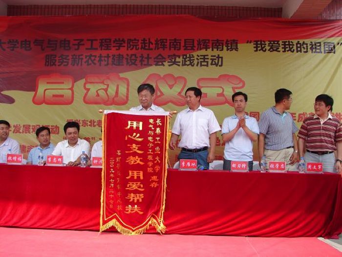 于暑期组织开展了“我爱我的祖国”服务新农村建设社会实践活动。 7月27日,社会实践活动启动仪式在辉南县辉南镇希望小学隆重举行。校党委副书记杨长生、辉南县委副书记钟泽秀等领导出席启动仪式。仪式上,辉南县委副书记钟泽秀致欢迎词,校党委副书记杨长生发表讲话。杨书记指出,开展好今年的社会实践活动对于青年学生深入学习十七大精神,学习、宣传、实践科学发展观,激发大学生开拓进取,奋发成才的主动性、积极性和创造性,增强大学生建设祖国,振兴中华的责任感、使命感和紧迫感,都具有十分重要的意义。杨书记希望大学生志愿者们在实践活动中本着“受教育、长才干、做贡献”的原则,发挥好大学生的文化优势,弘扬科学精神,传播科技新风,结合农村的实际需要,切实为农村解决一些实际困难,为农村的三个文明建设做贡献。也希望大学生志愿者们珍惜这一难得的实践机会,紧密结合自身成长成才的需求,大胆探索,勇于实践,与时俱进,开拓创新,在社会实践这一大课堂中历练自我,全面成才,为实现全面建设小康社会的宏伟目标而努力奋斗! 双方领导为社会实践基地揭牌,杨书记代表学校为希望小学捐赠2台电脑、3000余册图书和大量文具及体育用品。辉南县委和希望小学还分别向学校赠送了锦旗和书画作品。学校学生工作处长李雁冰、团委副书记胡刃锋、学院党委书记张学忠、副书记周文军,辉南县委办公室主任、宣传部长、教育局长、团委书记等出席了启动仪式。启动仪式结束后,双方领导参观了希望小学和大学生社会实践现场。  此次社会实践活动历时5天。大学生志愿者在希望小学举办了数学、语文、英语特色辅导班,大学生与小学生学习、成才交流会,开设了电脑展示课、播放了历史影片,举行了建国60周年成就图片展,开展了社会主义新农村政策宣传,为当地老乡免费检测和维修家电。志愿者还走访了困难小学生家庭,参观了当地特色企业,深入农田体验劳动生活,到当地村委会开展挂职锻炼体验活动。 此次社会实践活动得到了吉林教育电视台和辉南县电视台的采访报道。 |