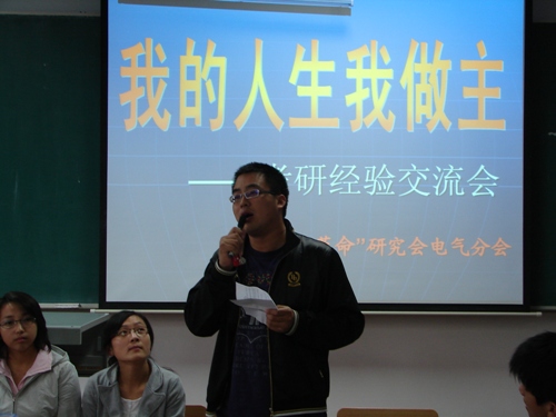 科研楼307教室举行“我的人生我做主”主题考研经验交流会,研究会的成员和部分学生参加会议。会议由学院学生工作办公室赵爽老师主持。