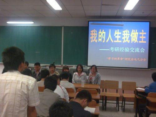 首先,赵老师介绍了参加交流会的代表:考取东北大学的刘秉星、合肥工业大学的郑勇、哈尔滨工业大学的姜鸣燕、吉林大学的王堒、浙江工业大学的曹福灵、河北工业大学的李记英、解放军理工大学的王昱霖。同学们的兴致特别的高,刚一落座同学们就积极的提问,有的同学问道如何的备考,有的同学问道具体哪个考研班适合自己,有的同学问道如何能拿到外校的考研真题,各种问题层出不穷,以上7名同学也根据自己的实际和所考取的专业为同学详细的一一解答,得到在场同学们的肯定,并投去赞许的目光。赵老师在最后的总结说,今年是我校的“文化年”建设,此次活动旨在推动91猫先生