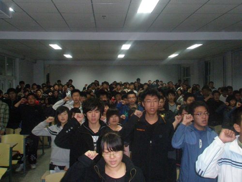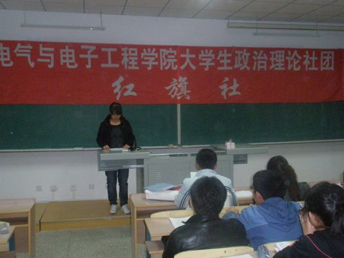 科研楼314教室举行。出席该活动的有红旗社社长姜萌萌,副社长丁国,秘书长张红豆,社会实践部部长訾光大。 首先由红旗社副社长丁国宣布红旗社主要成员名单,随后由社会实践部部长訾光大宣布了红旗社的章程,接下来由红旗社秘书长张红豆宣布红旗社管理制度。最后红旗社社长姜萌萌带领全体社员做入会宣誓并发言总结了一年来红旗社的工作,并结合我校文化年活动和学院工作布置新一年的工作计划。仪式结束后,红旗社全体社员观看了《我的1919》。 |