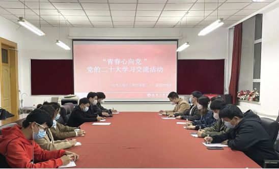 团学组织主要学生干部于2022年10月24日18:00在电气楼1401室集合,共同学习党的二十大报告。