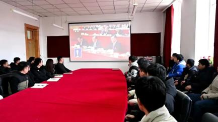 的师生们齐聚一堂,共同观看第十四届人民代表大会的盛况。