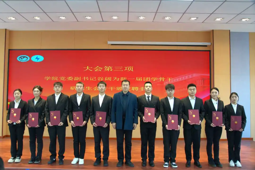 大会第三项:学院党委副书记谷阔老师为新一届团学骨干、研究生会骨干颁发聘书