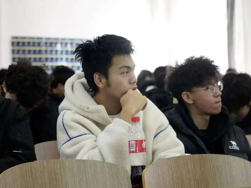 在年级大会现场,同学们正襟危坐,全神贯注。他们目光专注地投向发言的老师,认真聆听每一个关于学业规划、品德培养和校园安全的要点。会场内秩序井然,他们以认真的态度展现出对知识的渴望和对自身成长的负责,为校园增添了一抹积极向上的色彩。