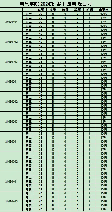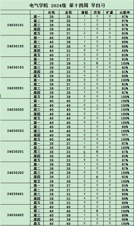 始终将其视作塑造优良学风的有力抓手。如今,第14周早晚自习出勤率已统计完毕,特向全院师生公示。