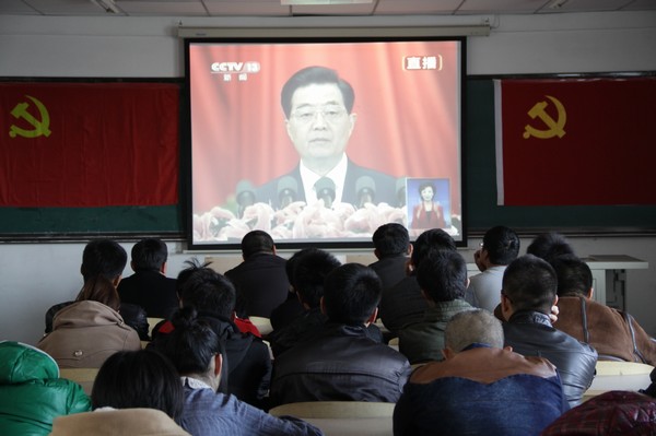 主楼1401室同红旗社骨干成员共同观看了中国共产党第十八次全国代表大会的开幕式。