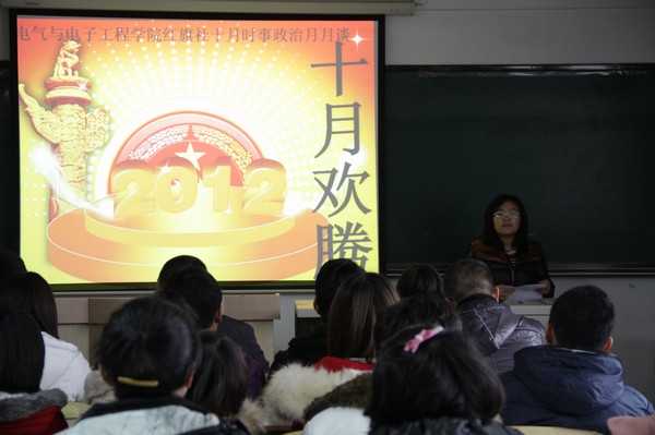 活动开始,主持人首先向大家介绍了十月最隆重的节日——国庆节的由来。我国封建时代国家喜庆的大事莫大过于帝王的登基、诞辰等。因而,我国古代人们把皇帝即位、诞辰称为“国庆”。接下来主持人又为大家展示了十月各大媒体以及网络上人们热议的浙江温岭女幼师虐童事件的图片,通过这些图片,我们看到了这起事件的本质:我国幼儿教育资源供给不足,私立幼儿园教师资质良莠不齐,大批无资质的幼师上岗是造成虐童事件频发的重要原因。在活动的最后,党员先锋队队长赵景兴同学针对活动的内容发表了自己的看法,赵爽老师结合自己的切身体会为这次活动作出了总结。