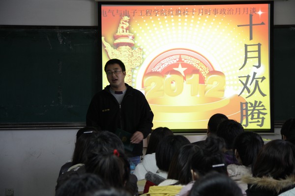 时事政治月月谈的系列活动十月欢腾,为同学们在对事件的思考上提供了一个平台,通过对事件的了解,同学们提出了自己不同的见解,并对事件发生的本质原因有所感受。这不仅锻炼了同学们独立思考的能力,更是以真实的事件使同学们得到思想上的教育。